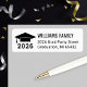 Modernes, individuelles Adressetikett mit schwarzem Graduierdeckel mit Tassel, Klassenjahr, Rücksendeadresse und weißer Hintergrundfarbe, die an jede Schule oder Einladungsfarbe angepasst werden kann.