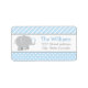 Elephant-Adressetiketten verfügen über ein reizvolles, kleines Jungelefantenkalb mit herzförmigen Splash und einem Polka-Punkt und diagonalen Streifen gemusterten Hintergrund. Modernes, graues, helles, pulverblaues und weißes Farbschema. Personalisieren Sie die Designvorlage mit Ihrer Rücksendeadresse. Verwenden Sie "Anpassen", um die Textgröße oder -farbe zu bearbeiten.