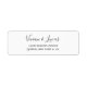 Das einfache und elegante Adressetikett enthält Ihre Namen in handgeschriebenen Schriftzeichen, darunter auch Adresszeilen.
