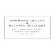 Die Briefmarke der Rücksendeadresse dieses modernen Ehepaares besteht aus zwei Nachnamen, die durch eine einfache Linie mit einem Diamanten in der Mitte miteinander verbunden sind. Ihre Namen und Adresse sind im modernen minimalistischen Schriftart. Die Nachnamen sind oben in größeren Buchstaben. Um dieses Design anzupassen und Ihre eigene, einzigartige Adresse-Briefmarke zu erstellen, klicken Sie auf den Button "Personalisieren". Denken Sie daran, den Platz zwischen zwei Namen verlassen, um die dekorative Trennwand aufzunehmen.