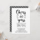 Weiß und Schwarz jubeln die Party Einladung in der Ruhestandszeit, die Sie leicht mit Ihren Party-Details personalisieren können. Diese Befürworter der Einberufung in den Ruhestand können leicht der Anzahl der benötigten Jahre personalisiert werden. Der Rücken dieses Ruhestand-Beifall zu Einladung ist ein weißes und schwarz gestreiftes Design. Bitte sehen Sie Fotos.