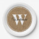Moderne Rustikale Burlap White Monogram Pappteller