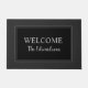 Moderne rustikale dunkelgraue schwarze Begrüßung Familienname Doormat. Sie können den Text und den Namen einfach ändern, um ihn zu personalisieren.