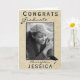 Moderne rustikale Glückwunsch Graduieren Abschluss-Fotokarte mit Graduate Name und Foto. Abschluss-Karte mit Graduierungskappe, Text-Glückwunsch, Graduiertenname und Foto des Absolventen auf der Vorderseite - personalisieren Sie mit Ihrem Namen und Ihrem Foto. Der Hintergrund ist eine beige rustikale Struktur. Personalisieren oder löschen Sie den Text in der Karte.