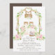 Moderne rustikale Outdoor Watercolor Floral Wedding Einladungen mit einem stilvollen Aquarellbogen mit Herz und einem Tisch mit Stühlen mit rosa, weiß und grün Blume auf weißem Hintergrund. Fügen Sie Ihren individuellen QR-Code auf der Rückseite für Ihre Hochzeitswebsite hinzu. Personalisiert, indem Sie den Text in den dafür vorgesehenen Textfeldern bearbeiten. Entworfen von ©Evco Studio www.zazzle.com/store/evcostudio