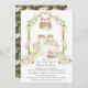 Moderne rustikale Outdoor Watercolor Floral Wedding Einladungen mit einem stilvollen Aquarellbogen mit Herz und einem Tisch mit Stühlen mit rosa, weiß und grün Blume auf weißem Hintergrund. Fügen Sie Ihren individuellen QR-Code auf der Rückseite für Ihre Hochzeitswebsite hinzu. Personalisiert, indem Sie den Text in den dafür vorgesehenen Textfeldern bearbeiten. Entworfen von ©Evco Studio www.zazzle.com/store/evcostudio