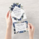 Moderne Rustikale Hochzeit mit blauen Wasserfarben All In One Einladung