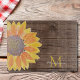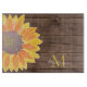 Dieses rustikale Schneidebrett ist mit einer gelben Aquarellsonnenblume auf braunem Holzfußboden dekoriert. Einfach mit Ihrem Namen und Monogramm anpassbar. Das ist ein großartiges Hauswärmen- oder personalisiertes Geschenk. Original Wasserfarbe © Michele Davies.