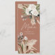Moderne Scheune Bauernhaus rustikale botanische bohemianische natürliche Pampas Gras und eukalyptus botanischen Hochzeitszins zahlen von Schreibwarenmenü. Schöne handbedruckte, getrocknete botanische Aquarellfarben und Schriftzeichen. Modernes Trend in natürlichem, schlauem Grün, Rost, Terrakotta, Braun und Schwarz.