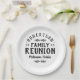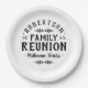 Individuelle Wiedersehen-Papier-Teller mit modernem rustikalem Typografie-Design. Personalisieren Sie es mit Ihrem Familiennamen, dem Jahr, dem Ort oder einem anderen benutzerdefinierten Text. Klicken Sie auf die Schaltfläche Anpassen, um Schriftart und Farben zu ändern, um Ihren eigenen Text und Ihre eigenen Fotos hinzuzufügen.
