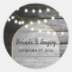 Eine schöne Verbindung aus rustikalem Holz kombiniert mit dem modernen schicken goldenen eleganten Lichter und Bogen. Ein einzigartiges Design, das Schwarz-Weiß-Töne mit einem Hauch von elegantem Gold verwendet. Ein Landhausstil trifft auf den Glamour der Stadt. Ein rustikales Hochzeitsaufkleber-Design mit modernen Elementen. Auch die passenden Hochzeitseinladungen und andere Schreibwaren sind verfügbar.