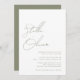 Moderne elegante minimale und einfache sage grüne Kalligraphie Skriptnamen in modernen Typografie Hochzeitseinladung mit QR-Code in der Rückseite der Einladung.