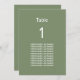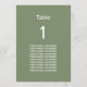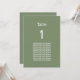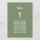 Moderne Sage Green Guest Names Table Card, leicht in der Online-Personalisierungsvorlage personalisiert, um die Tischnummer für die entsprechende Tabelle und die Gastnamen für diese Tabelle anzuzeigen. Das Design kopiert sich automatisch auf die andere Seite der Karte, um den Gästen zu helfen, ihren Tisch von beiden Seiten des Tisches zu finden. Diese stilvolle Tischkarte mit einem schlichten, modernen minimalistischen Design bietet Platz um die Textelemente herum, um die Wahl der Anzeigemethoden wie das Aufhängen oder Framing der Karte zu ermöglichen.