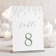 Lassen Sie Ihre Gäste mit einer frischen Touch von Eleganz in diesem maßgeschneiderten Design der Tischnummer, mit feinen handgezeichnet Botanicals geschmückt. Der helle, weiße Hintergrund mit subtilem, grün grün blättrigem, anmutig kaskadierendem Laub verleiht Ihren Empfängen einen ruhigen und natürlich raffinierten Akzent. Diese bezaubernde botanische Kunst bietet eine klare Führung mit zeitlosem, Bio Stil.