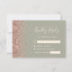 Moderne Sage Green Rose Gold Glitzer Edge RSVP Car Karte