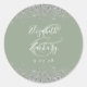 Moderne Sage Green Silver Glitzer Edge Wedding Runder Aufkleber