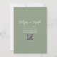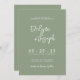 Eine elegante, einfache minimalistisch grüne Frühjahr Sommerhochzeit Einladung. Das ist schlichter, schlauer, grüner Hintergrund. Und die weißen, einfachen Handschriften schreiben die Vornamen der Braut und des Bräutigams und die bearbeitbaren Informationen mit den Namen der Braut und des Bräutigams und dem anpassbaren QR-Code auf der Rückseite. Erschwinglich und es ist digitale elektronische e-Einladung auch . Alle Informationen können durch Anklicken des Buttons Personalisieren angepasst werden. So packen Sie es und machen Sie es zu Ihrem, sodass Sie verlobt und aufgeregt einladen .