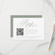 Mit unserer modernen Sage Green White Simple Minimal RSVP Card Elevating your wedding Experience mit unserem modernen Hochzeitsstichtencode QR Code Moderne Minimalistische RSVP Card. Diese elegante Einschließkarte ist die ideale Wahl für Paare, die ein gepflegtes, raffiniertes Design mit moderner Drehung suchen. Die Karte wurde mit dem Fokus auf Einfachheit konzipiert und ergänzt wunderbar jedes Hochzeitstil und nutzt dabei modernste Technologie. Schlüsselfunktionen: QR Code UAWG: Vereinfachen Sie Ihren UAWG mit unserer innovativen QR-Code-Technologie. Die Gäste können mühelos auf Ihre rsvp-Karte antworten, indem sie den QR-Code mit ihren Smartphones scannen, was es für sie zu einer Brise macht, ihre Anwesenheit zu bestätigen. Modernes und Minimalistisches Design: Unsere Karte besticht durch eine atemberaubende Schwarz-Weiß-Farbpalette, die Eleganz und Modernität ausstrahlt. Sein minimalistischer Ansatz sorgt dafür, dass es sich mühelos mit Ihrer Hochzeitsästhetik verbindet. Einfache und textbasierte Typografie: Die elegante Typografie, die auf dieser Karte verwendet wird, behalte das Design sauber und leicht lesbar und sorgt dafür, dass Ihre Gäste alle notwendigen Informationen zur Hand haben. Individuell anpassbarer Website QR Code Einfügen: Personalisieren Sie Ihre Karte, indem Sie einen QR-Code einfügen, der direkt auf Ihre Hochzeitswebsite verweist. Tauschen Sie wichtige Veranstaltungsdetails, Fotos und vieles mehr aus und schaffen Sie so ein unvergessliches und interaktives Erlebnis für Ihre Gäste. Wir von Happy People Prints sind stolz darauf, Ihnen diesen exquisiten Wedding QR Code Moderne Minimalistische RSVP Card anzubieten, die den traditionellen Charme von Hochzeitseinladungen nahtlos mit modernster Technologie verbindet. Einfache Bedienung und Stil während Sie Ihre RSVPs mühelos verwalten. Machen Sie Ihre Hochzeit unvergesslich, stressfrei und Öko-bewusst mit unserem HochzeitQR-Code Moderne Minimalistische RSVP-Karte. Bestellen Sie noch heute Ihre Hochzeitsreise mit einer Touch moderner Eleganz. Mit unserer innovativen QR-Codelösung präsentieren wir Ihnen die Zukunft der Hochzeitseinladungen. Entdecken Sie die Möglichkeiten bei Happy People Prints und geben Sie Ihren Gästen ein unvergessliches Erlebnis.