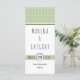 Moderne Weise grün Typografie Hochzeitskarte, die ein weißes geometrisches Muster auf Salbei und ein Banner mit Ihrem Hochzeitstermin.