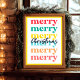 Suchen Sie eine moderne, immergrüne Weihnachtsdekoration? Schauen Sie sich unser modernes, farbenfroh-gelbes Weihnachtsgebäck an! Farbenfrohe Weihnachtsdekoration mit fröhlichem Weihnachtstext!