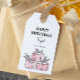 Dieses Geschenk-Tag hat ein charmantes, minimalistisches Design mit einem hellen, texturierten Hintergrund, der dem Aquarellpapier ähnelt. Im oberen Bereich befindet sich eine fett formatierte Großschreibung in einem klassischen Serif-Schriftart, während ein kleinerer, zarter Script-Schriftart dem Gruß ein herzliches, handgeschriebenes Gefühl verleiht. Unterhalb des Textes befindet sich eine Abbildung von drei schön eingewickelten Geschenkboxen in weichen Rosa-Tönen, die jeweils mit einfachen Bögen und grünen Sprigs für eine festliche Touch geschmückt sind. Eine rote und weiße verdrehte Saite wird durch eine Öffnung oben gegossen, die einen Pop Farbe hinzufügt. Der Stil ist modern, sauber und spielerisch, ideal für ein wohlüberlegtes Geburtstagsgeschenk.