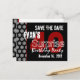 Hier ist eine trendige Save the Date Postkarte in Schwarz-Weiß mit Akzenten von Rot für ein überraschendes 40. Geburtstagsfest. Spaß! Der gesamte Text ist anpassbar.