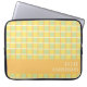 Eine moderne Laptop-Hülle im Schachbrettmuster in warmem Grün, Gelb und Orange, mit einem orangen Farbfeld am unteren Rand, das Sie mit Ihrem Namen anpassen oder mit dem Namen einer geliebten Person zu einem personalisierten Geschenk machen können. Stecken Sie Ihren Laptop hinein und tragen Sie ihn stilvoll zur Schule, ins Büro oder in Ihr Lieblingscafé. Die schützende Verarbeitung und die stilvolle Hülle machen sie sowohl praktisch als auch hübsch. Vielen Dank, dass Sie sich ein Design von Eria Daisy Art angesehen haben!