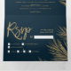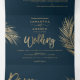 Neuer Dreifachvortrag Moderne schicke goldene Palme elegante Hochzeitsnavy blau , perfekt für tropische elegante, luxuriöse Hochzeiten, fügen Sie Ihr Foto, Ihre Hochzeitsdetails und uAwg.