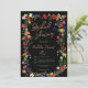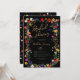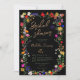 Fügen Sie Ihren Veranstaltungen eine Touch bohemianischer Eleganz hinzu mit unserem modernen Chic Boho Bright Elegant farbenfrohe wilde Blume Bridal Duwer Einladung. Die botanischen Blume in Rosa, Rot, Grün und lila Farbtönen, inspiriert von Wildblumen und rustikalen Aquarellen-Gärten mit subtiler Vegetation und moderner boho-Schrift-Typografie auf schwarzem Hintergrund.