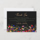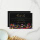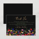 Fügen Sie eine Touch böhmischer Eleganz hinzu, um Ihnen zu danken Karte mit unserem modernen Chic Boho Bright Elegant farbenfrohe wilde Blume Design. Die botanischen Blume in Rosa, Rot, Grün und lila Farbtönen, inspiriert von Wildblumen und rustikalen Gärten mit subtiler Vegetation und modernem boho-Schriftzeichen, dunkler Hintergrund
