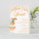 Moderne elegante Liebe bei First Spritz Bridal Dusche Einladung - Mit einem Aquarellspritz in Aperol mit einem orangefarbenen Slice-Faden geschmückt mit einem Coquette-Orangenbogen. Die Einladung hat einen gepflegten, gestreiften, cremefarbenen Hintergrund und einen Bogenrahmen. Die Worte "Liebe am ersten Spritz" sind in einer Mischung aus raffinierter Skriptkalligraphie und elegantem Block-Orangentext geschrieben. Editieren Sie diese Brautduscheinladung mit Ihren eigenen Veranstaltungsdetails. Auch als sofortiger digitaler Download erhältlich, einfach per Text, E-Mail oder Social Media zu versenden.