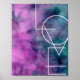 Eine moderne, schicke Liebe-Poster-Wandkunst hat einen lila und aquamarinen Aquarell-Hintergrund für Wandkunst Dekoration.