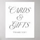 Moderne Hochzeitskarten und Geschenkschild mit "Karten & Geschenke" in elegantem schwarzen Typografie-Stil: eine Kombination aus Kalligrafie und Serifenschrift. Personalisieren Sie die schwarz-weiße Hochzeitskarten und Geschenkzeichen mit einer kurzen Danksagung oder Sondertext. Das einfache Hochzeitskarten- und Geschenkschild ist perfekt für Ihre Hochzeit, Paardusche, Verlobungsfeier, Babydusche, Geburtstagsparty oder besondere Veranstaltung.