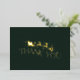 Bedanken Sie sich bei Ihren Gästen im festlichen Stil! Diese moderne und elegante Dankeskkarte zeigt einen schönen Schlitten, der durch einen verschneiten Nachthimmel fliegt, vor einem dunkelgrünen Hintergrund mit schimmernden, echten Goldfoliendetails. Es ist eine stilvolle Art, Ihre Dankbarkeit zu zeigen und passt perfekt zu unserem modernen Schneefocken-Weihnachts-Schreibwarenset.