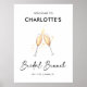 Minimalistisches elegantes Willkommenszeichen für Ihr Brautparty, moderner Schwarz/Weiß Kontrast.