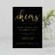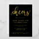 Ein einfaches, aber eindrucksvolles Design, um Freunde und Familie zum Neujahr einzuladen. Dieses Design enthält das Wort "Cheers" in Goldfolie handgeschriebenen Stil Skript-Schriftart vor einem schicken schwarzen Hintergrund. Personalisieren Sie Ihre Party-Details in Goldfolie. Weitere Artikel, die Ihr Party anpassen können, sind in diesem Design verfügbar.