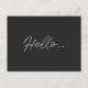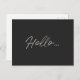 Minimalistische, einfache und stilvolle "Hello.." Zitat Postcard mit modernem Schreibstil in Grau silber auf schwarzem Kreidebrett-Hintergrund, der einen lustigen, klassisch zeitlosen Look verleiht. Das Gegenteil wurde für Ihre eigene Nachricht leer verlassen. Was für eine bessere Art, hallo zu sagen! Teil unserer Skriptdesign-Kollektion, bitte schauen Sie sich das an!
