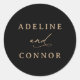 Fügen Sie Ihren Hochzeitsbriefen eine Touch hinzu, dekorieren und noch mehr mit diesen modernen und eleganten Rundaufklebern, die auf schwarzem Hintergrund eine Goldtypografie aufweisen.