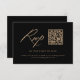 Diese QR-Code RSVP-Karten sind perfekt für eine moderne Hochzeit geeignet und zeichnen sich durch ein elegantes Skript und minimalistisches Schwarz-Gold-Design aus.