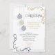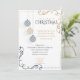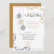 Weihnachts-Party Einladung | Moderne Schwarz-Gold-Minimal-Weihnachtsbaummöbel - drei schwarz und goldgestreifte Weihnachtsschmuck hängen auf unterschiedlichen Ebenen - gepaart mit Goldene Ecken und zeitgenössischem Schriftart machen diesen Appell für Zuhause- oder Geschäftsfeiertage-Einladungen - mit Ihren Informationen ganz einfach gestalten - dies ist Teil der modernen Schwarz-Gold-Minimal Holiday Baubles Kollektion