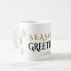 Holiday Coffee Tasse | Moderne Schwarz-Gold-Minimal-Weihnachtsbaummöbel - drei gestreifte Schwarz-Gold-Weihnachtsschmuck hängen auf unterschiedlichen Ebenen auf beiden Seiten des Textes ' Saisongrüße ' - in einem Schriftart, um dies zu einem ansprechenden Geschenk für Familienfreunde oder Geschäftsleute zu machen - passen Sie Ihren Namen einfach an - dies ist Teil der modernen Schwarz-Gold-Minimal Holiday Baubles Collection