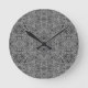 Moderne Schwarz/Graue Kaleidoskop Abstrakte Art Round Clock. Cooles abstraktes Design, das Kaleidoskopmuster in Grautönen in Schwarz und Weiß darstellt.