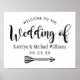 Modernes Begrüßungszeichen mit modernem Schwarz-Weiß-Farbschema mit kühnen und spielerischen handgeschriebenen Kalligrafien mit stilvollen Schriftzeichen. Personalisieren Sie den lässigen und dennoch eleganten Text für Ihren Hochzeitstag. Das Pfeilbild kann je nach der gewünschten Richtung gedreht werden (per Anpassen).