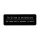 Ein schlichtes, modernes, minimalistisches Rücksendelabel mit einer klaren Schrift in Weiß auf schwarzem Hintergrund. Passen Sie die Vorlage mit Ihrem Namen und Ihrer Adresse an. Für den persönlichen oder geschäftlichen Gebrauch. Eine schlichte, attraktive Trennlinie zwischen den Schriftzeichen hat ein leicht abgerundetes Ornament an den Enden, was eine subtile Touch der Eleganz hinzufügt.