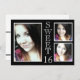 Einfache weiße Boxen bieten Rahmenflächen für Ihr Geburtstagsmädchen auf einem fett schwarzen Hintergrund. Nur Sweet 16 ist auf der Vorderseite geschrieben, sodass die Fotografien wirklich herausragen. Passen Sie die Rückseite mit Ihren Party-Details an.
