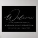 Elegantes Abschluss-Zeichen mit "Welcome" in einem modernen, weißen Kalligrafieschrift mit schwarzem Hintergrund (oder einer beliebigen Farbe). Personalisieren Sie das moderne Abschluss-Poster, indem Sie den Namen, den Namen der Schule und das Abschluss Jahr. Das Schwarz-Weiß-Abschluss-Schild eignet sich sowohl für Absolventen der Highschool als auch für Absolventen der Uni.