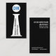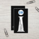 Bringen Sie abstrakte Visitenkarten in schwarz-weiß-blaue Visitenkarten an, die eine weiße Spalte auf schwarzem Hintergrund, einen Kreis über der Spalte mit den blauen Monogrammen/Initialen und dem Text anzeigen. Personalisieren Sie es mit Ihrem Text und fügen Sie Ihr Logo hinzu.