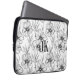 Moderne Schwarz-Weiß-Blumen-Mit Monogramm Laptopschutzhülle