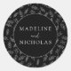 Moderne Schwarz-Weiß-Botanische Hochzeit Runder Aufkleber