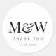 Moderne Schwarz-weiße Monogram Wedding Danke klassische Round Sticker. Schönes, fett schwarz-weiß Design mit moderner Typografie und Paare Initialen, danke, und Datum. Zeitloser schwarzer Text auf weiß. Personalisieren Sie mit den Namen der Braut und des Bräutigams, dem Hochzeitstag, können Sie den Beispieltext und/oder die Farben nach Ihren Wünschen anpassen. Hervorragend zum Anpassen von Gefälligkeiten, oder für Siegel auf Dankeschön. Wir laden Sie ein, unseren Shop, Austen & Grace, zu besuchen, um die komplette Hochzeitssuite, passende Produkte und mehr zu sehen. Bitte kontaktieren Sie uns, wenn Sie Hilfe benötigen.